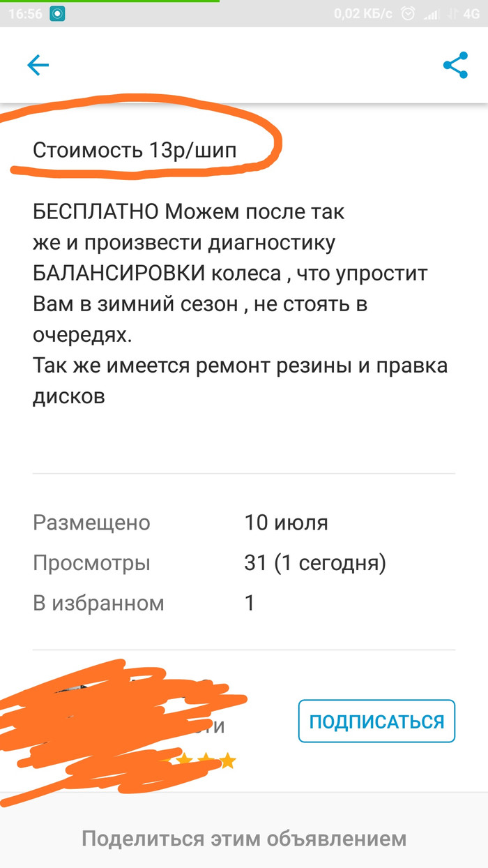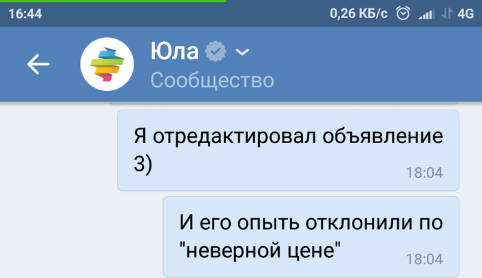 ("Я отредактировал объявление 3)" : это сообщение было отправлено, после добавления надписи 16р/шт.