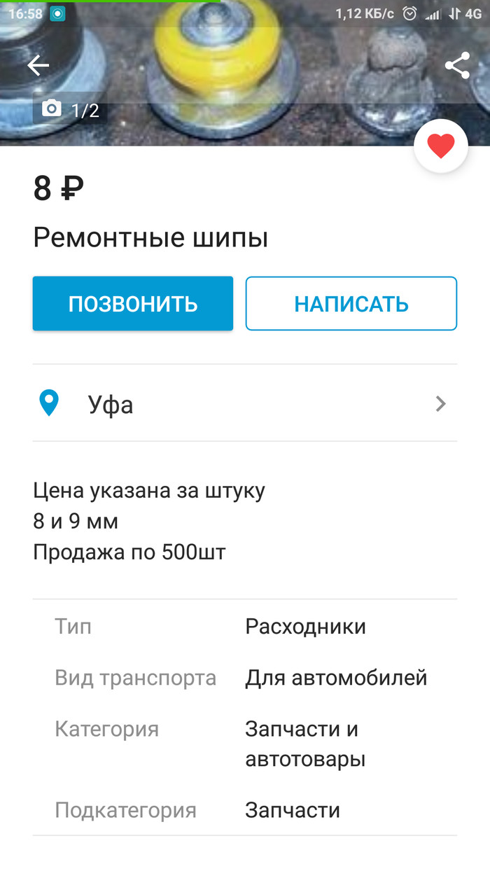 Одним из моих направлений деятельности является ремонтная ошиповка (это когда с зимних шин вылетают заводские шипы, на их место ставят специальные ремонтные шипы; я для водителей - как стоматолог для хоккеиста) и продажа шипов.