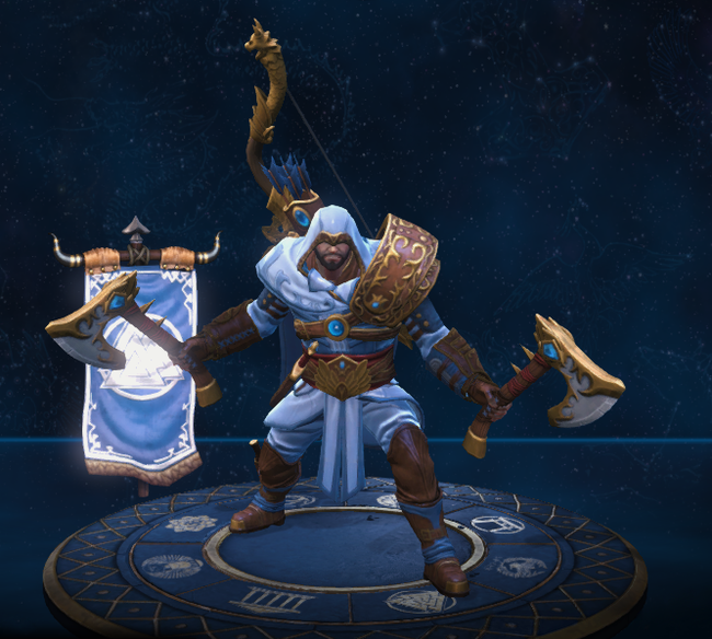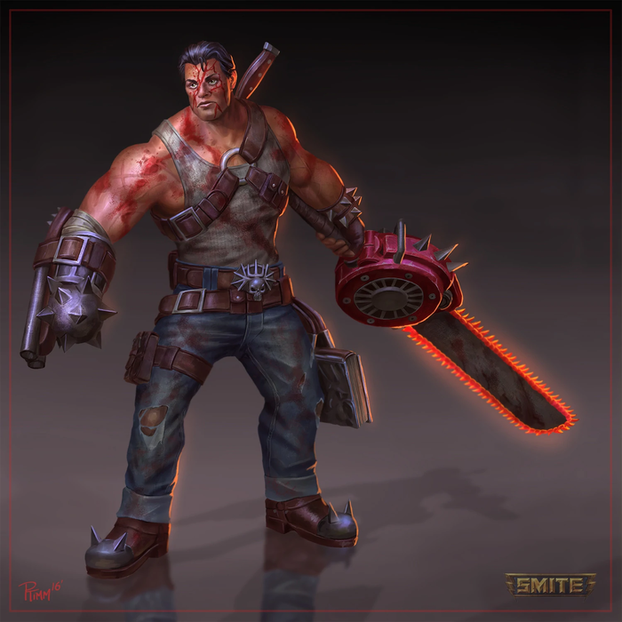 Следующим богом с отсылкой в скине является Тир, скандинавский бог чести и войны, отдавший руку дабы не запятнать свою честь. Скин Hail to the King (До здравствует Король) отсылает нас к Эшу, персонажу фильма "Армия тьмы".
