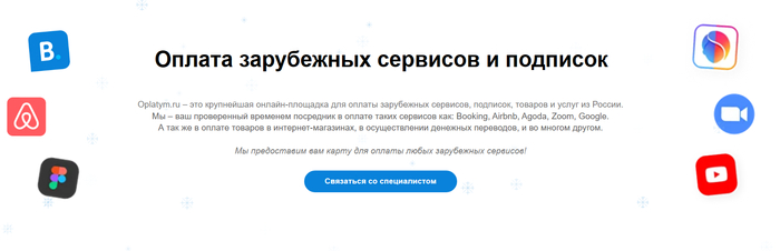 Сервисы-посредники (Oplatym) — применяются для оплаты иностранных сервисов и подписок без прямого взаимодействия с платёжной системой сервиса.