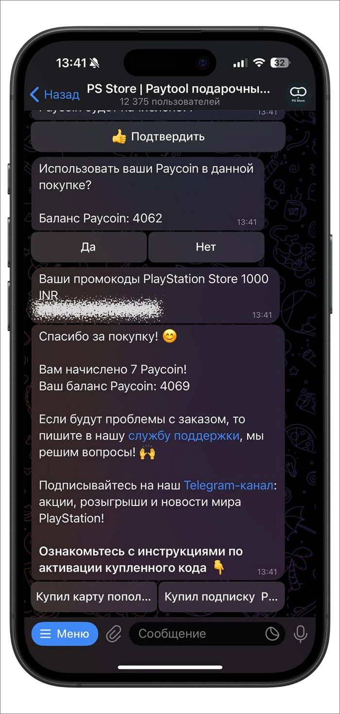 Дождитесь выполнения: как только подписка будет куплена, вы получите уведомление в боте.