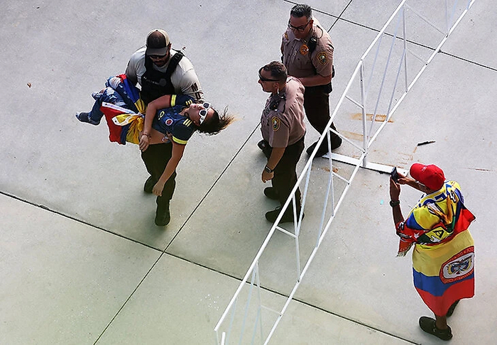 Начало финального матча Кубка Америки Аргентина – Колумбия было отложено почти на 1,5 часа из-за беспорядков. На стадион «Хард Рок Стэдиум», который вмещает 65000 зрителей, пытались прорваться тысячи безбилетников. В целях безопасности входы на арену были закрыты, а начало матча – отложено. Однако меры безопасности не помогли в полной мере, закрыте привело к давке. Позднее входы были открыты, а многие болельщики проходили турникеты совершенно без контроля – у многих не проверяли ни билеты, ни личные вещи.