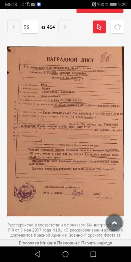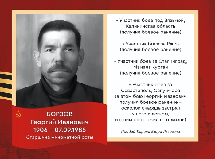 Прадеда призвали на фронт в начале июля 1941, а уже с сентября он числился пропавшим без вести. После войны его односельчанин-однополчанин сказал, что прадед погиб при бомбежке эшелона на фронт, но официальных подтверждений этому нет.
