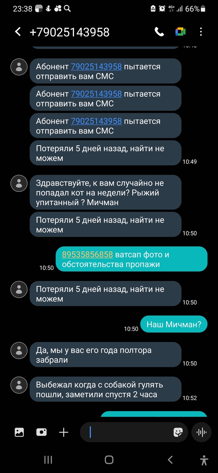 А кот все время был у неё! У соседки из этого же подъезда! Только с 7 этажа...