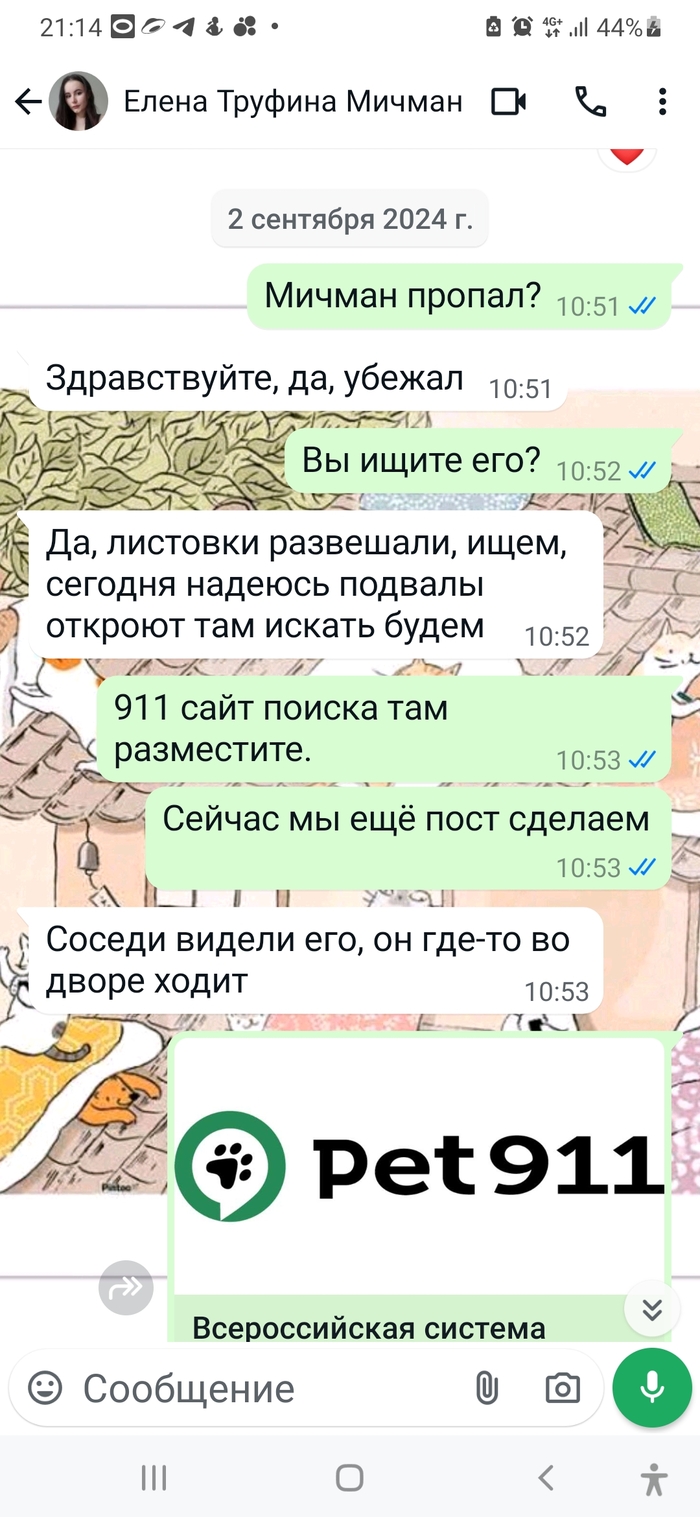 Несколько дней искали, опрашивали соседей, написали заявление в полицию, расклеивали листовки о розыске Мичмана.