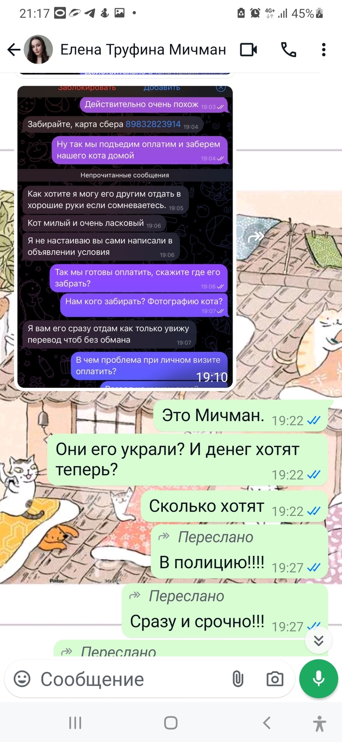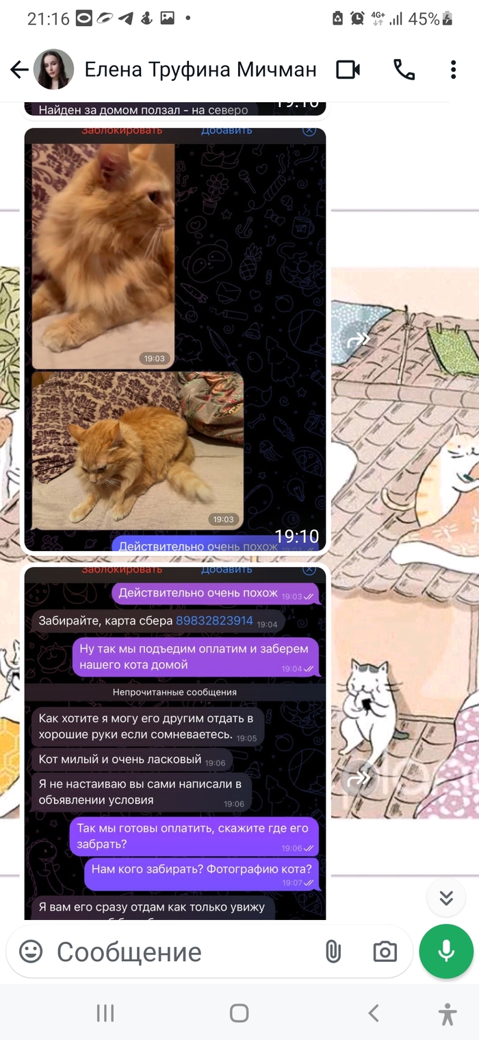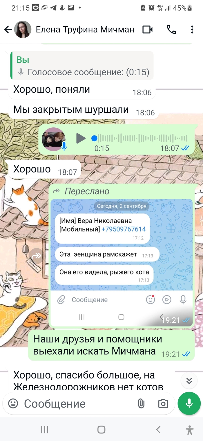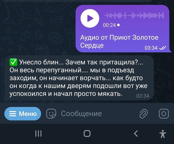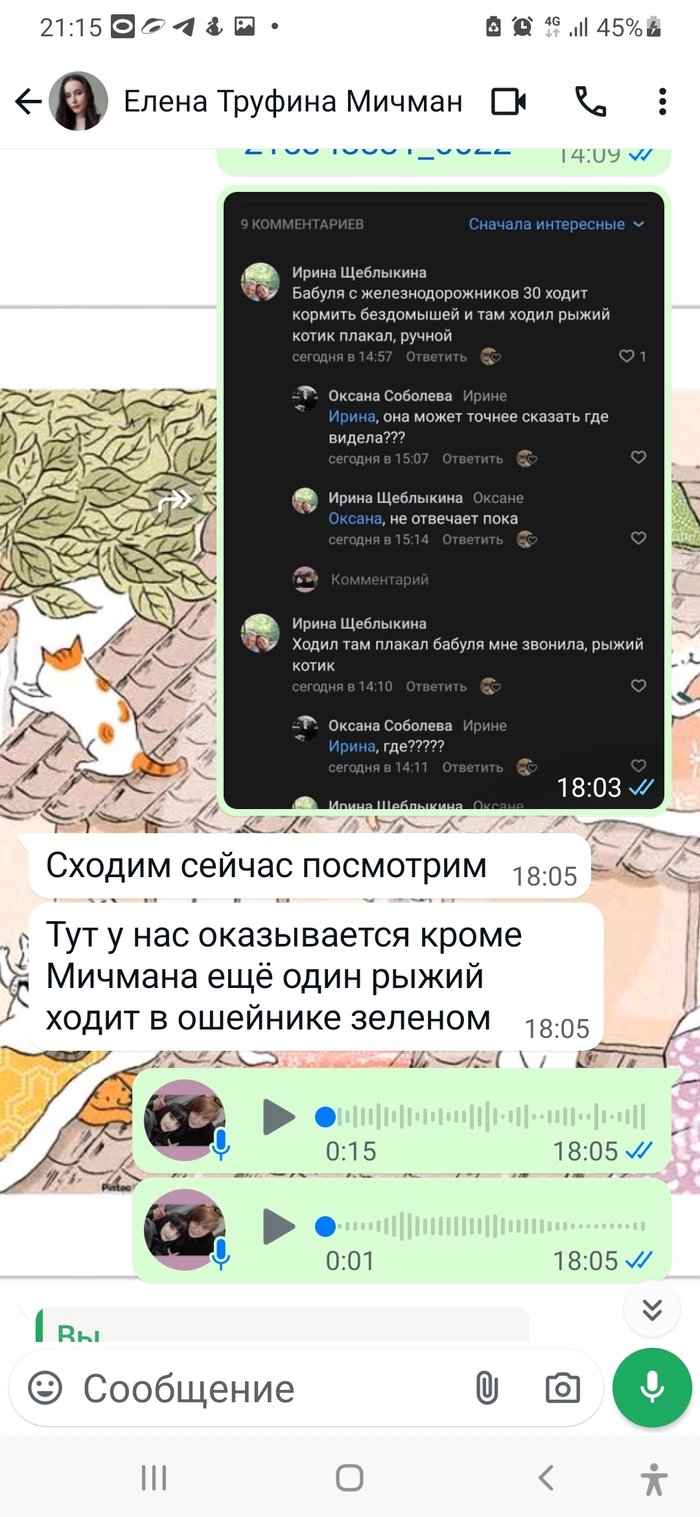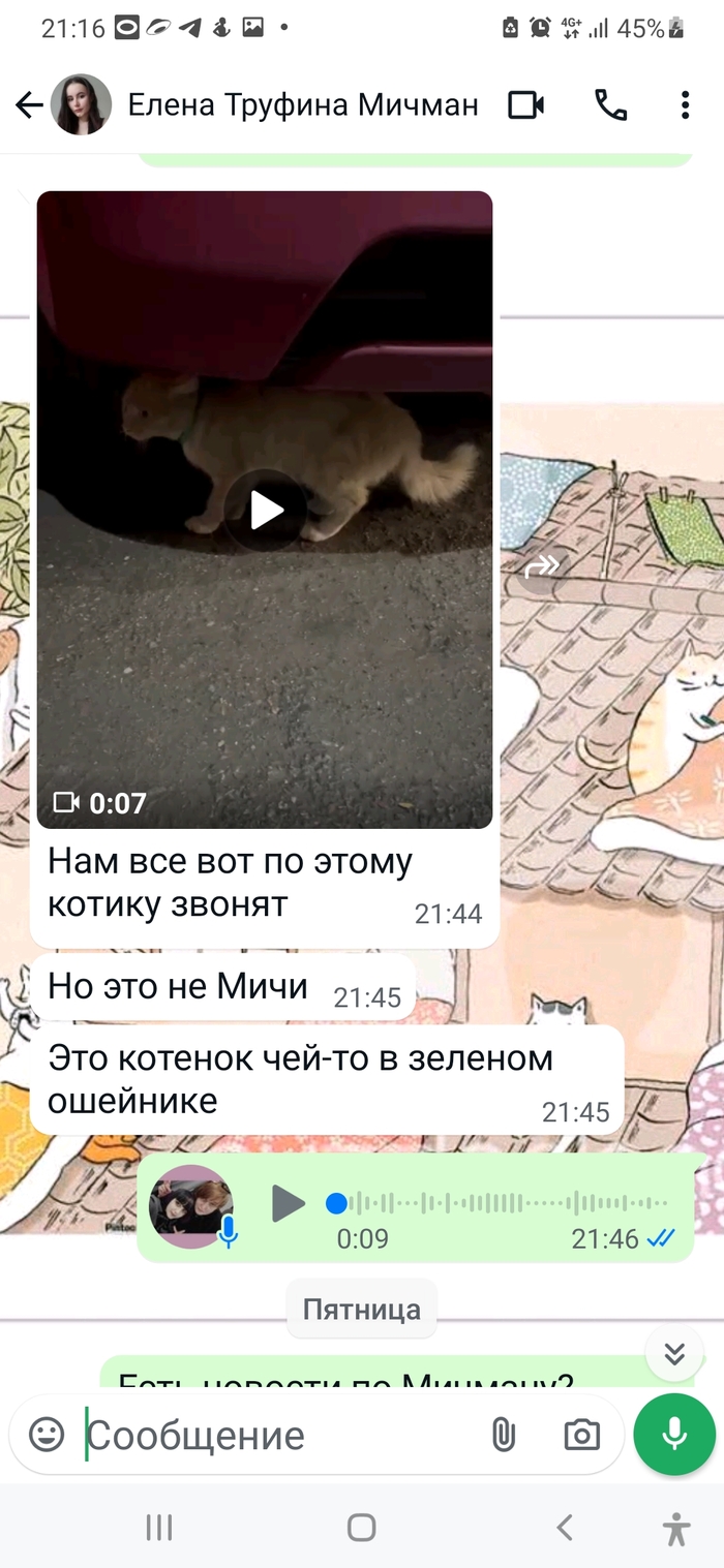 Небольшая ремарка: голосовые от Лены-хозяйки Мичмана-это рыдания...прямо в голос..