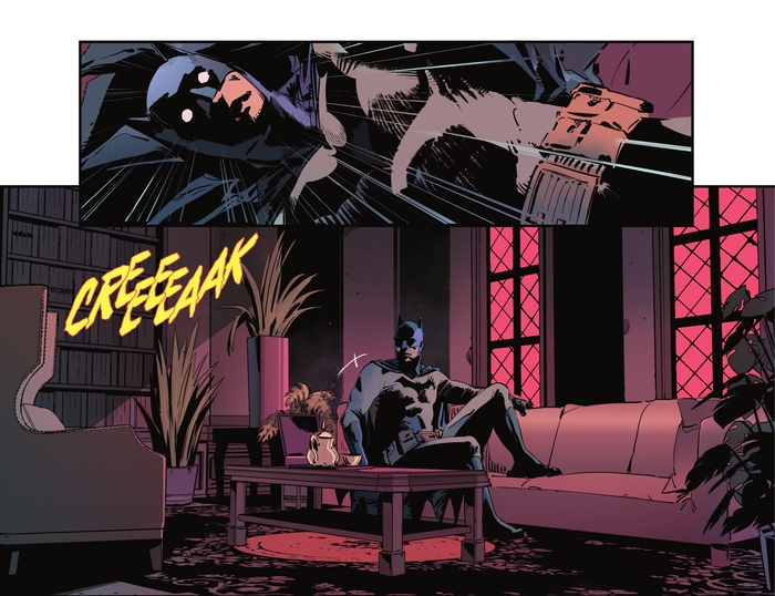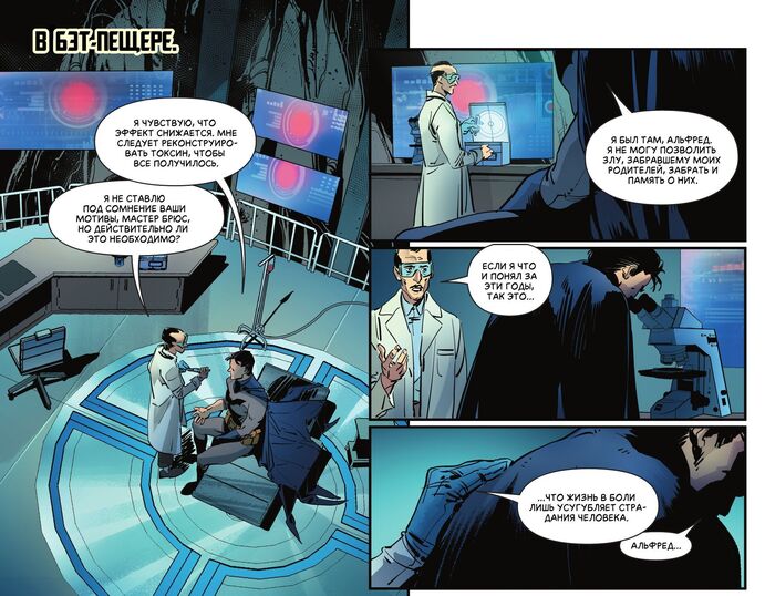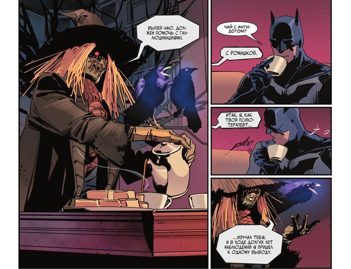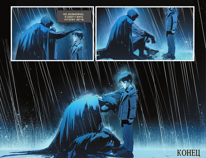 Мне тут пришла мысль публиковать сюда переводы комиксов про Бэтмена. Вернее, натолкнул меня на эту идею @MorGott. Перевод сделан лично мной. Если кому-то потребуются шрифты или референсы — пусть пишет в комменты, дам название. Для понимания истории не требуется читать какие-то другие комиксы, этот выпуск ни с чем сюжетно не связан. Не знаю, что еще писать, поэтому напишу описание комикса.