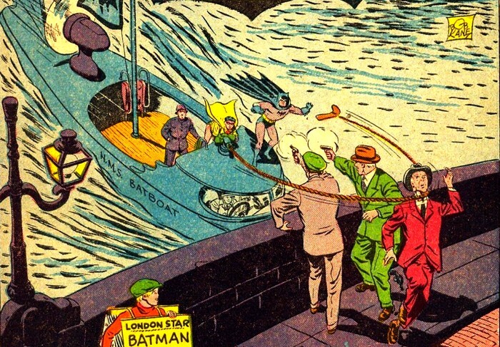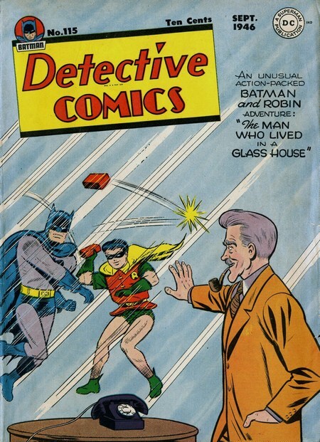 И сегодня приключения начнутся с комикса Detective Comics #110 за апрель 1946 года, от Дона Кэмерона (история) и Уина Мортимера (рисунок). Проблемы в Лондоне! Какой-то бандит, видимо, обчитался Шерлока Холмса и теперь в меру сил копирует преступления Мориарти, причём довольно успешно. Скотленд-Ярд оказывается бессилен, но лондонские слышали, что в Готэме есть Лучший в Мире Детектив, а потому звонят Джеймсу Гордону, мол, дай Бэтмэна погонять. Бэтмэн и Робин отправляются в Англию, прихватив с собой верного дворецкого, Альфреда Бигля. Пока Динамический Дуэт знакомится с констеблями и получает во временное пользование Бэткатер, Альфред посещает дом, где когда-то жил Шерлок Холмс. Увы, сейчас в том доме живут бандиты, и Альфреда похищают.