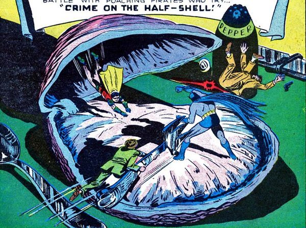 Решают Бэтмэн и Робин поймать пиратов “на живца” и приманивают их типа богатой добычей. И таки успешно приманивают. И получают по голове, и бандиты ещё и берут Джо в плен, а Бэтмэна и Робина бросают за борт, чтоб те утонули. Доставив Джо в своё убежище, бандиты заставляют её написать записку с требованием выкупа, но Джо также оставляет в записке характерные вмятины. Её ослепший отец, уже освоивший шрифт Брайля, “читает” эти вмятины (которые с обратной стороны, соответственно, выпуклости), и оказывается, так Джо дала подсказку, где найти бандитов. Остаются мелочи – надавать бандитам лещей, а уж в этом Бэтмэн и Робин поднаторели (они не утонули). Устричных пиратов в итоге сдают властям, и Джо Джиббс остаётся лучшей добытчицей устриц в Готэмских водах!