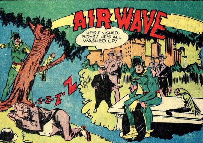 Разумеется, нельзя. И конечно же, на турнире Робин Гуда вычисляют и берут в плен вместе с Бэтмэном. Но ему удаётся выкрутиться, подать тайный сигнал с помощью магии (на самом деле карманное радио), и Весельчаки всей гурьбой посрамляют Шерифа ещё разок. И все довольны, кроме Шерифа. А Брюс и Дик просыпаются в настоящем, в 1946 году. И раз история “ниочём”, а место ещё есть, вот Радиоволна на закуску. Линчеватель-радиолюбитель Ларри Джордан продолжает геройствовать под прозвищем “Радиоволна”, у него и сайдкик появился, попугай Статик. Но очередное дело оказывается сложнее предыдущих. Ларри знакомится с девушкой по имени Джейн, отца которой взяли в заложники бандиты. Она хочет поступить в технический вуз, но доступное место только одно, и бандиты её предупредили, что намерены пропихнуть туда своего человека (чтобы он научился радио-премудростям и мог противостоять Радиоволне), поэтому она должна провалить экзамен, иначе её отец погибнет. Отца заставляют давать бандиту правильные ответы через мини-радио. Радиоволна же взламывает частоту переговоров и даёт бандиту неправильные ответы, после чего находит логово бандитов и раскидывает их, и спасает отца Джейн.