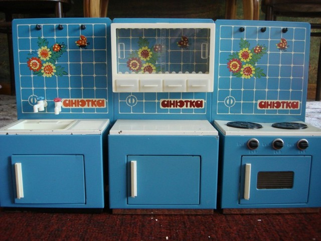 Игрушечные плиты с вращающимися ручками и открывающимися духовками вызывали восторг: можно было «готовить» воображаемые супы и пироги, варить кашу из песка и даже устраивать кукольные застолья. И совсем уж счастьем было заполучить в подарок игрушечную кухонную мебель — шкафчики, стол со стульями, плиту с духовкой, мойку.