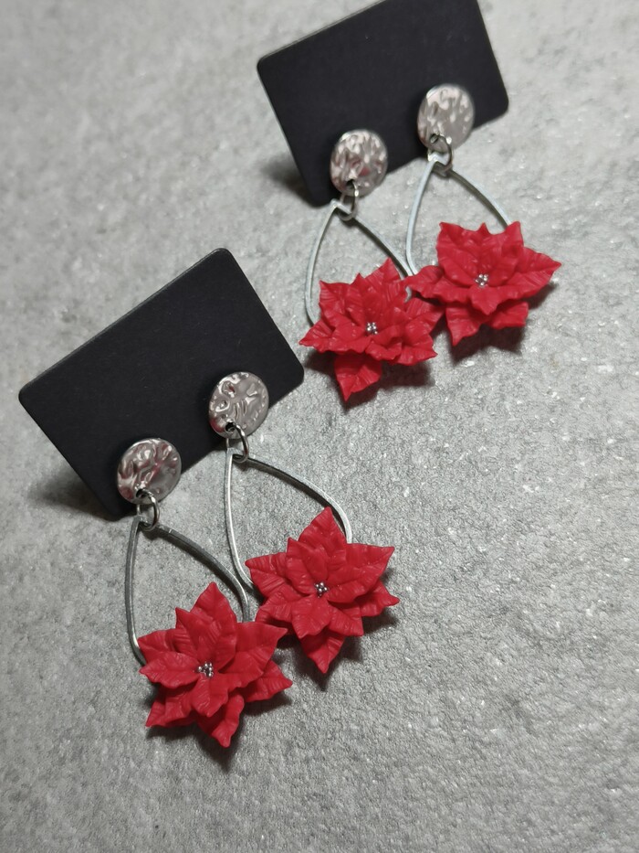 Случайно нашла идеальный фотофон - мягкую, уютную кошку, и не смогла не познакомить её с этими серёжками. Пуансеттия, или Рождественская звезда - как раз тот яркий и праздничный акцент, которого иногда не хватает в хмурые зимние дни.