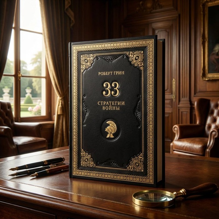 Книга Роберта Грина посвящена стратегиям поведения в конфликтах и анализу человеческой психологии в ситуациях соперничества. Автор рассматривает войну как метафору жизненных и деловых процессов, предлагая способы принятия решений и выхода из сложных положений. Текст ориентирован на стратегическое мышление и управление конфликтами без насилия. Издание выполнено в цельнокожаном переплете ручной работы с цветной кожаной вставкой, золотым и блинтовым тиснением. Корешок украшен бинтами, обрез имеет золотую узорчатую накатку. Используется шелковое ляссе и дизайнерская бумага форзацев, дублюра окатана золотом. Книга представлена в оригинальном подарочном коробе с возможностью сертификата и комплектом перчаток.
