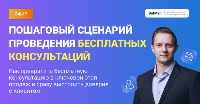 В эту среду 8 октября, Милов Анатолий проведет бесплатный и даст вам простую, но действенную схему для проведения таких консультаций. Она проверена проверена и отточена на практике и вы сможете сразу внедрить ее себе. Записаться можно по ссылке.