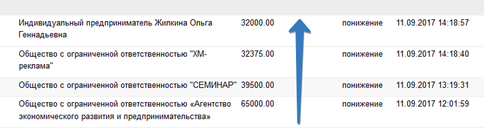 Это означает, что при двух подставных ИП наступает момент умышленного и ручного корректирования цен, что лишает остальных участников возможности на победу.