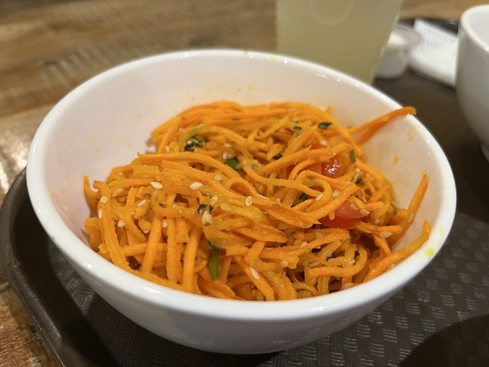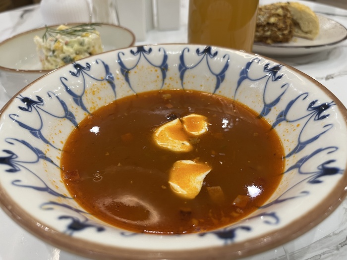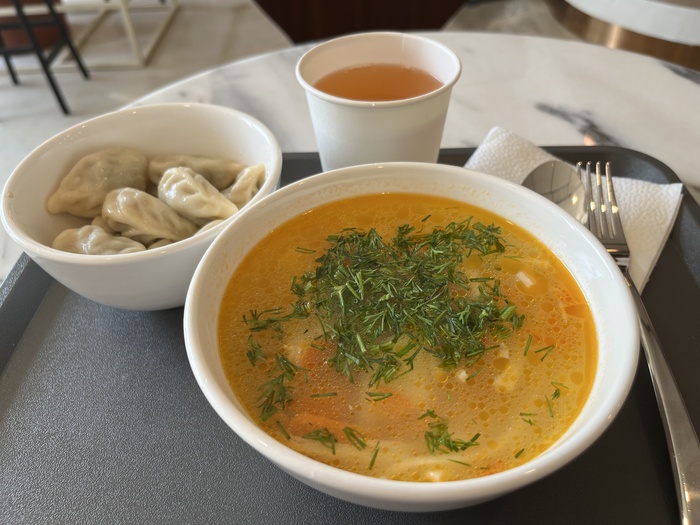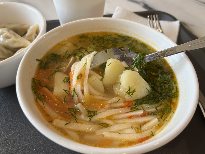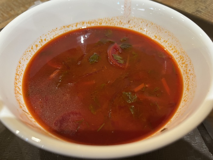 Пряный, тыквенный, горячий. Сытный, вкусный. Не знаю, как вы, но я обожаю тыкву во всех её проявлениях – и очень доволен, что именно этот суп мне достался в предлагаемом комплексе.