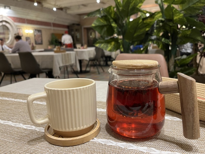 Компоненты делового обеда прибывали на мой стол по мере готовности (я предпочитаю именно такую подачу, потому как так еда не успевает остыть) и довольно оперативно (что логично для бизнес-ланча). Первым появился ягодный пунш.