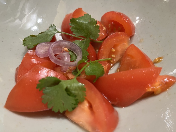 Салат – сама простота (и надёжность): томаты с кинзой.