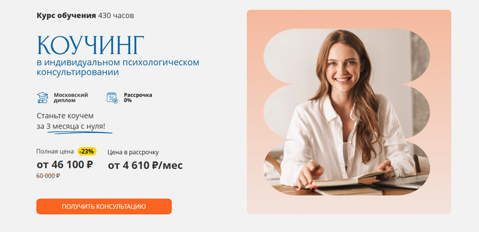 Психолог бизнес-консультант. Коуч от Московского Института Профессий — интенсив для начала карьеры в бизнес-консультировании с международным дипломом.