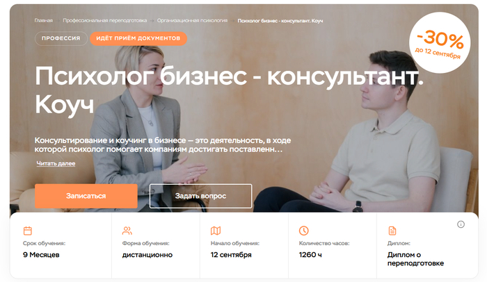 Бизнес-коучинг: результативные технологии работы с сотрудниками, командами и организациями от ИПО — учат консультированию в бизнес-контексте, дают навыки проведения тренингов, развития талантов и управления динамикой сотрудников. Интенсив соединяет психологию, управление конфликтами и практику с наставником. Вместе с менеджером выпускники составят резюме, отточат собеседования и получат поддержку в трудоустройстве.