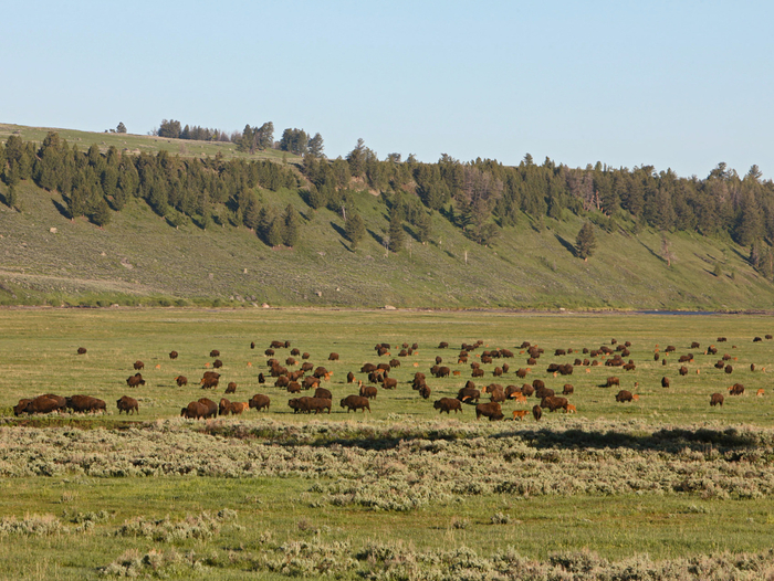 Коллектив «коммунального семейства» может насчитывать несколько сотен особей. Стадо в Йеллоустонском национальном парке насчитывает 5900 бизонов! Согласитесь, редкий хищник рискнёт напасть на монолит из мощных копыт и рогов! А вот человеку закон не писан, ибо по сей день в некоторых региона США идёт охота на «индейскую подушку безопасности».