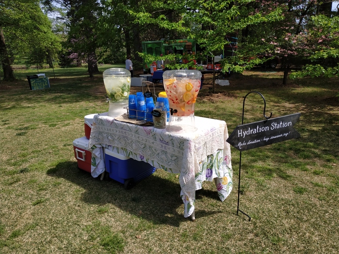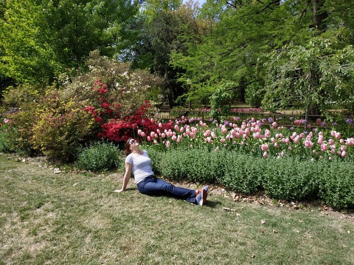На следующий день поехали отдыхать в местный ботанический сад. Его история тоже любопытная. Был заброшенный сад, мимо проезжала некая дама, сад ей приглянулся и она его купила. Ухаживала, приводила в порядок, привлекала к этому делу волонтеров - и теперь это прекрасное место для воскресных посиделок, концертов и сборищ. По воскресеньям народ платит на входе 10$ и на лужайке ставит свои стульчики/пледы, раскладывает еду и слушает музыку. Также кто-то из волонтеров готовит еду, продают за небольшую денежку (6-8$). Стоят непременные бочонки с огуречной водой и льдом - можно налить себе воды и задонатить. Ещё есть местные фермеры, которые тоже продают чего-то - редиску там, мед и прочее.