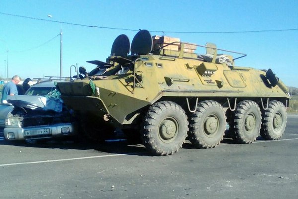 Бронетранспортер раздавил иномарку в Алтайском крае