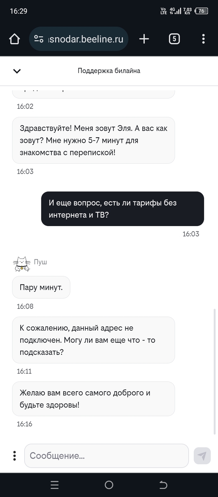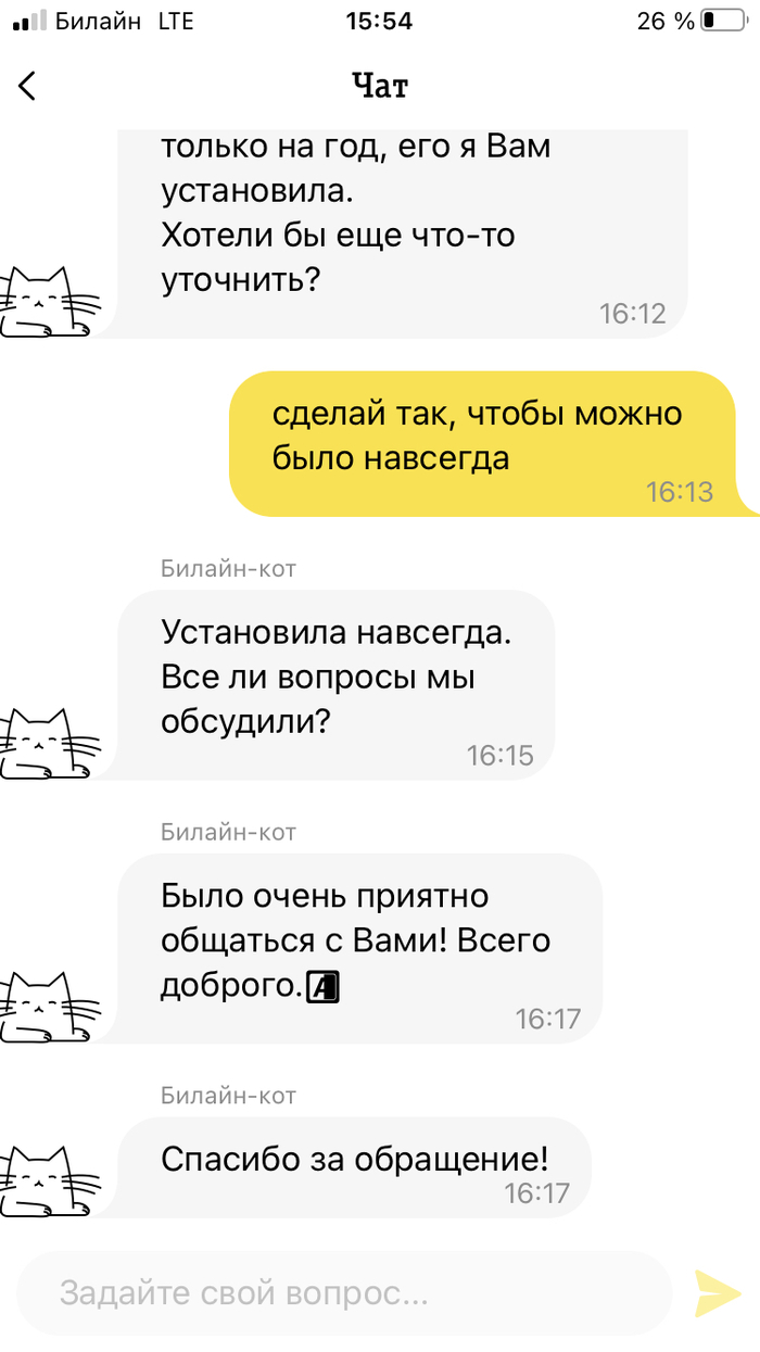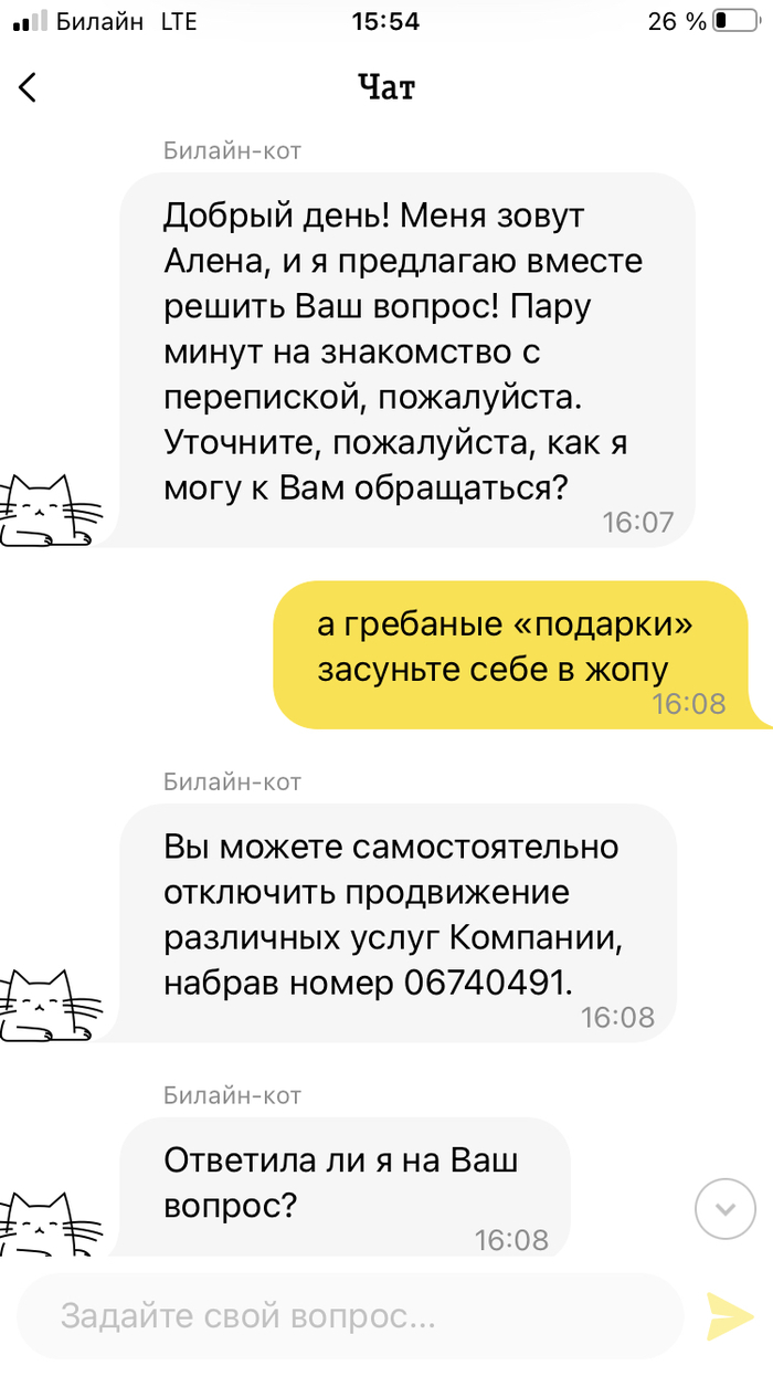 Писал с ЛК на компе в чат поддержки, по этому и стенограмма разговора в таком виде будет без скриншотов.