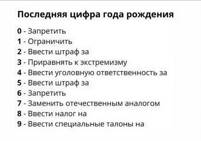 Выбираем последнюю цифру своего года рождения, потом число и месяц рождения — получаем личный запрет.
