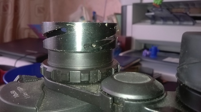 С самого начала эксплуатации у бинокля заедал выдвижной окуляр, но так как живу далеко и брал через инет то заморачиваться с обменом-возвратом не хотелось. Этой весной окуляр окончательно заклинил, сняв резинку я увидел что отсутствует направляющий винт: