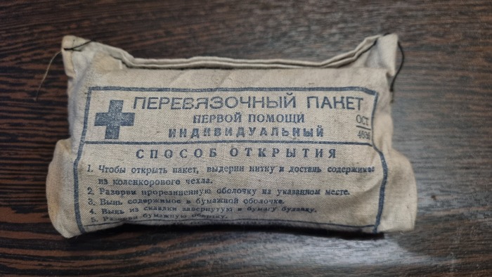 Для общего развития. Так выглядит современный армейский ИПП. Эластичный бинт плюс пришитая марлевая повязка. Хорошо тормозит даже мелкокалиберные артериальные и любого калибра венозные кровотечения.