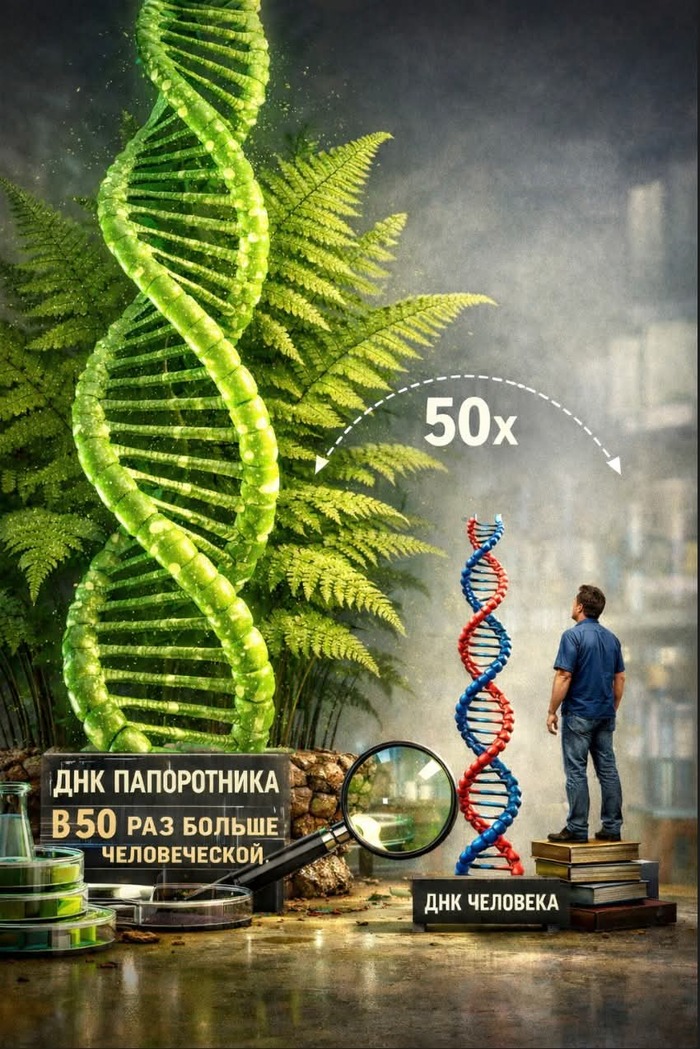 Если ДНК одной из клеток папоротника, ширина которой составляет всего долю миллиметра, распутать, она растянется на 106 метров, посчитали исследователи. Геном папоротника содержит 160 миллиардов пар оснований. Это на 7% больше, чем у предыдущего рекордсмена, цветка Вороний глаз японский (Paris japonica).