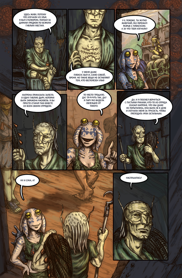 ⊷ В сыром воздухе парят тонкие нити светящихся неоновых люминесцентных спор. Звуки отдаленных молитвенных песнопений сливаются с гудением биотехнических систем жизнеобеспечения сектарных блоков.