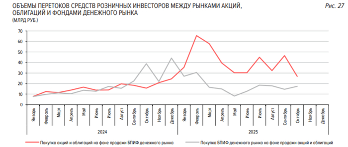 💬 В октябре произошёл рост рынка БПИФ: стоимость чистых активов составила 1326₽ млрд (+5,8% м/м, акции снижаются, а фдр растут). В течение октября отмечалось снижение объёма покупок акций и облигаций при одновременной продаже паев БПИФ денежного рынка.
