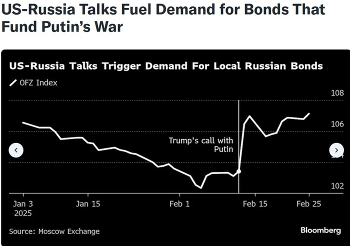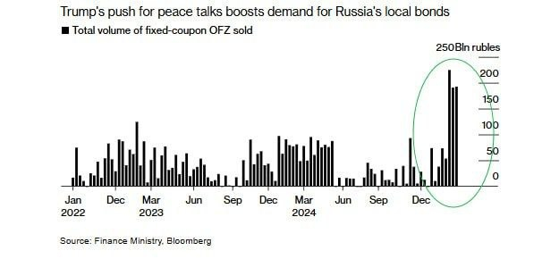 НЬЮ-ЙОРК, 28 февраля. /ТАСС/. Международные инвесторы активно ищут пути обхода антироссийских санкций для покупки российских активов, доступные им на мировом рынке акции работающих в России компаний выросли на десятки процентов после начала переговоров между РФ и США. Об этом пишет агентство Bloomberg.