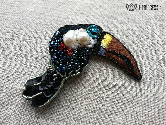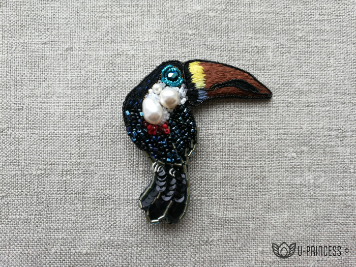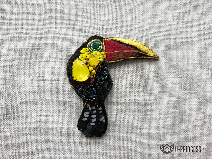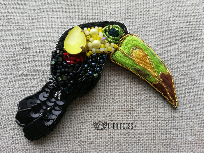 5. Тукан-ариэль (Ramphastos vitellinus). Вариация птички из первой части. На грудке кристаллы Сваровски и бисер.