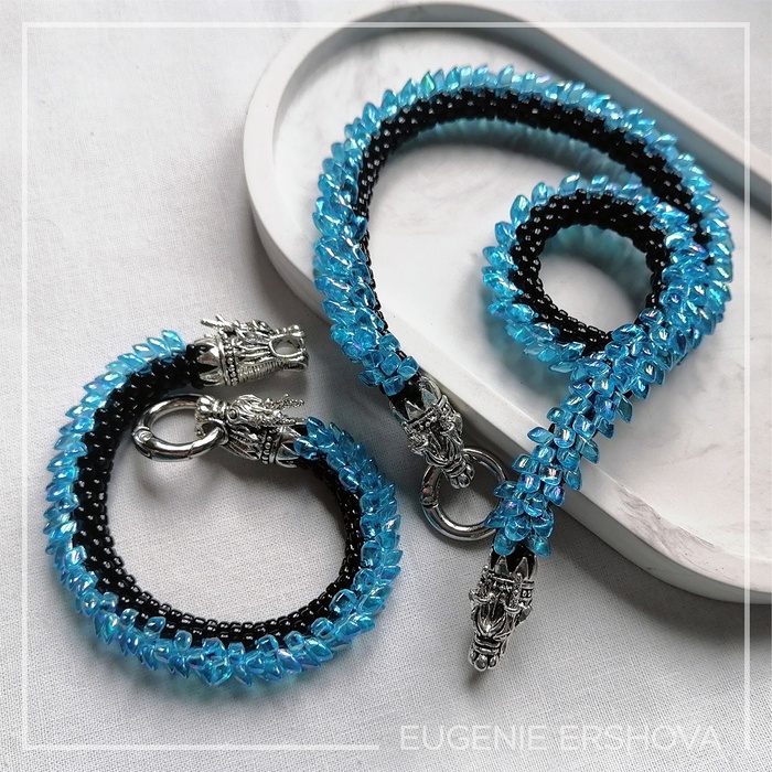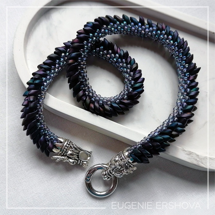 Диаметр основы примерно 37см + 5см удлиняющая цепочка.Длина подвесок до 9,5см. Сделано в технике низания из чешского бисера.