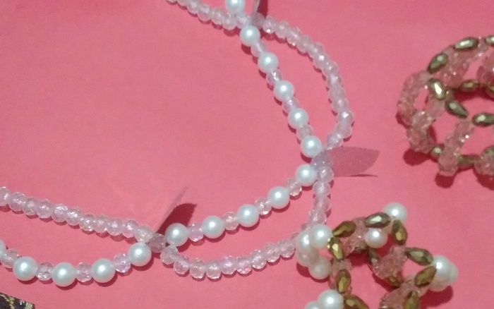 Потому что бусины граненые. Обычный свет они просто пропускают через себя, создавая эффект бликов. А яркий направленный или солнечный отражают радужными зайчиками