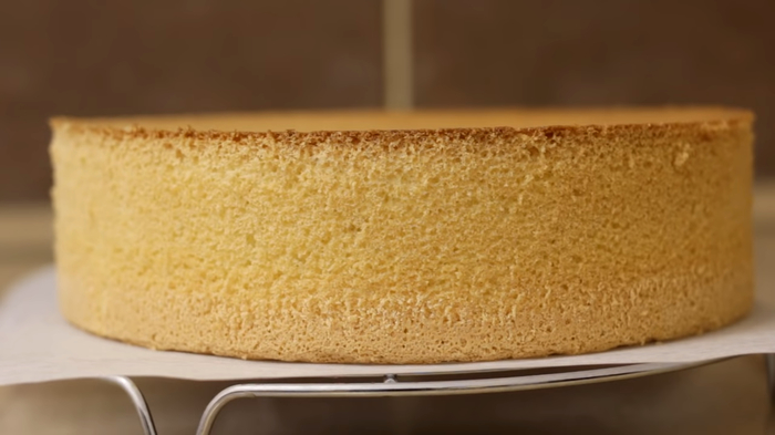 Теперь аккуратно снимаем пергаментную бумагу и даем бисквиту полностью остыть.