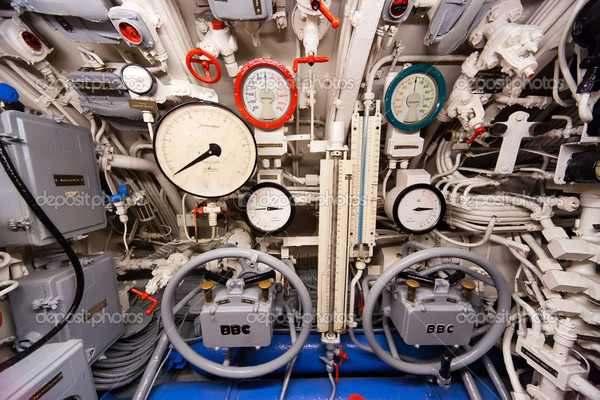 Пост управления кормовыми и носовыми горизонтальными рулями. Слева находится глубометр (до 25 м)