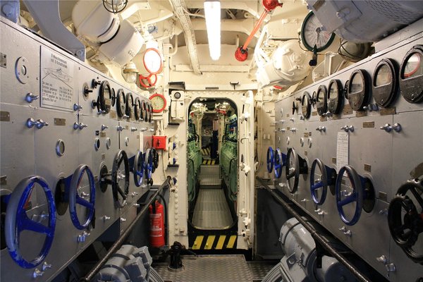 Центральный отсек - мозг ПЛ. Сюда сходится вся информация и отсюда командир руководит своей лодкой. Здесь находились зенитный и командирский (в боевой рубке) перископы, рули управления горизонтальными и вертикальными рулями, вентили управления клапанами цистерн. Здесь же находился боевой пост штурмана вместе со столом и всеми необходимыми инструментами.