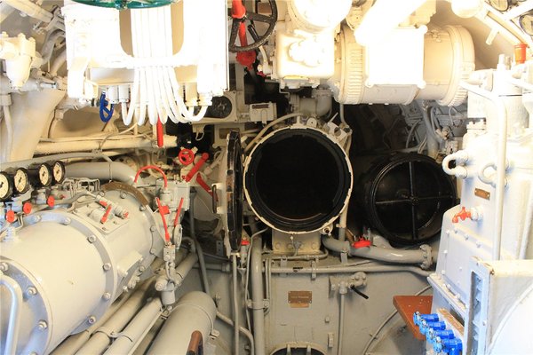 Помещение 5 отсека почти полностью было занято двумя расположенными вдоль бортов дизелями. Под палубным настилом располагались масляные цистерны.