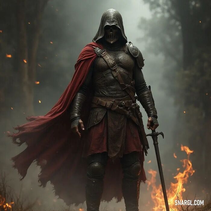 Строение, напоминающее нечто среднее между Замком и Церковью горит и разрушено. Вдалеке мы видим великана, до неба, за которым трупы, разрушения и пожарища.