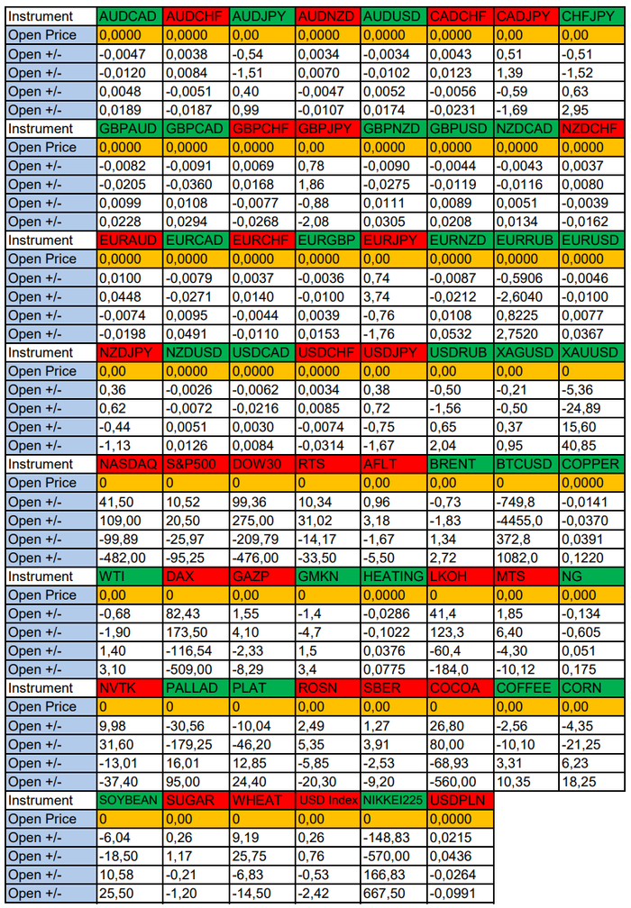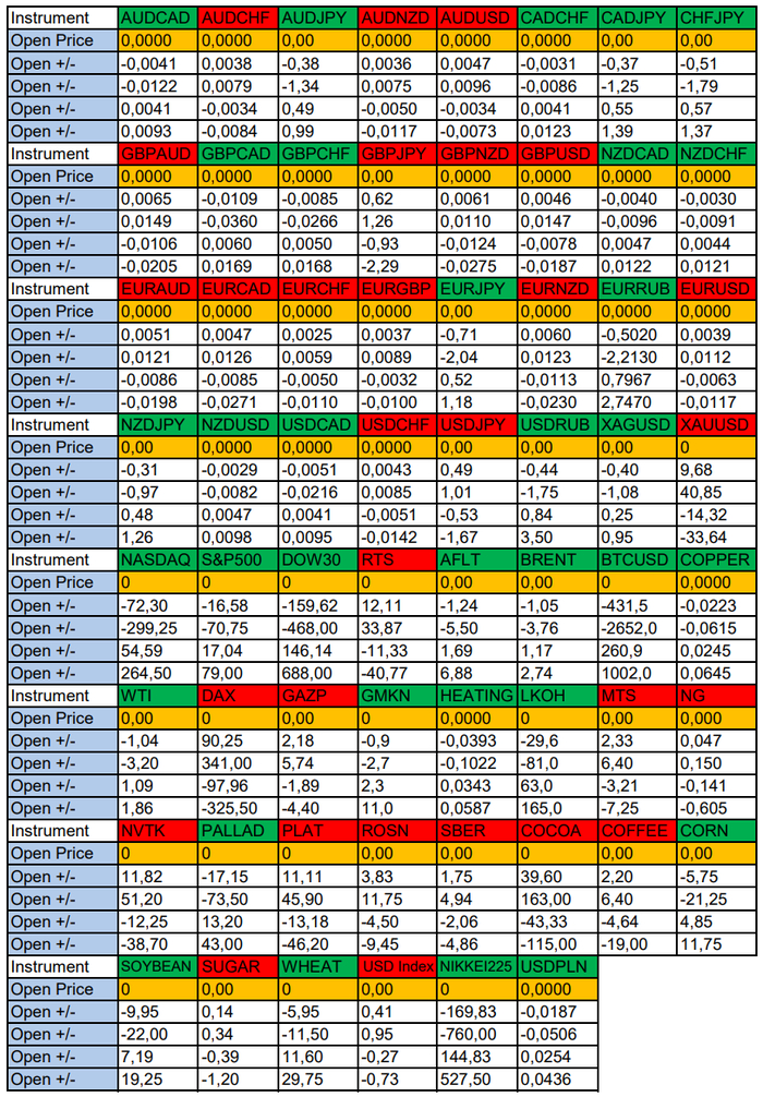 Весь перечень анализируемых активов указан ниже в общем количестве 62 инструмента. Здесь Вы найдете активы рынка Форекс, популярные активы Московской биржи, не менее популярные активы Чикагской биржи СМЕ и мажор криптовалютного сегмента - Биткоин, за которым следуют все альткоины.