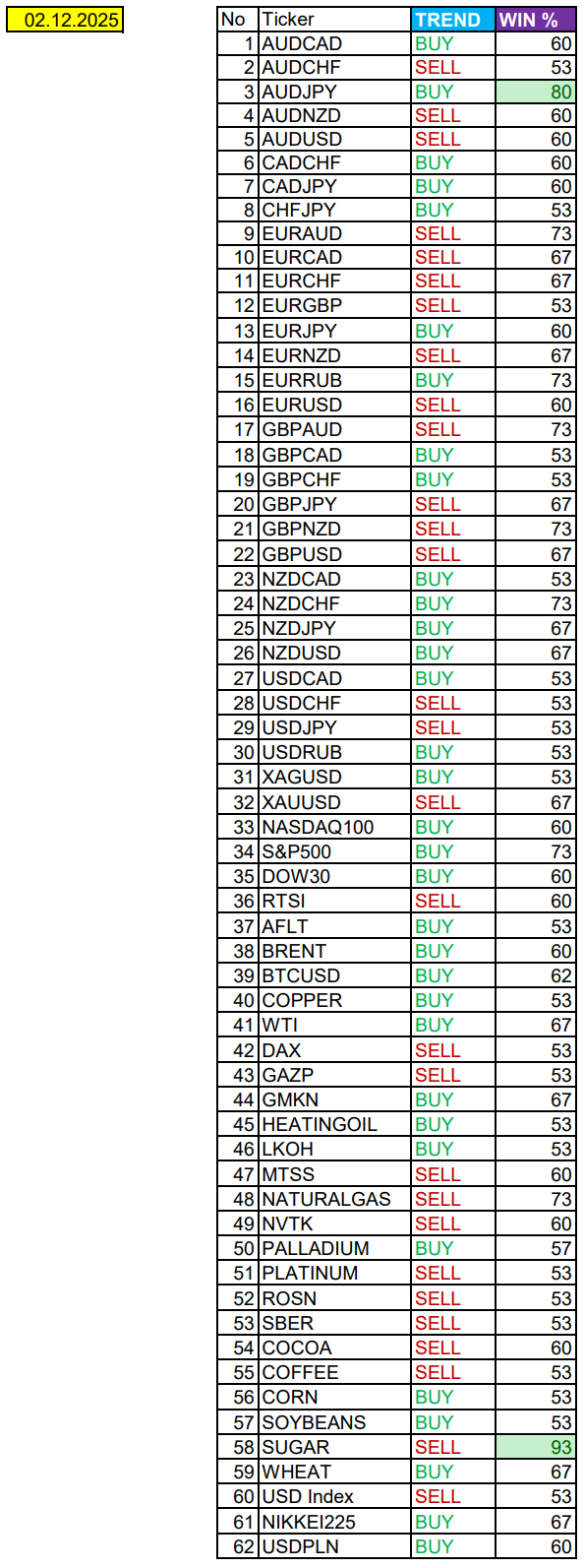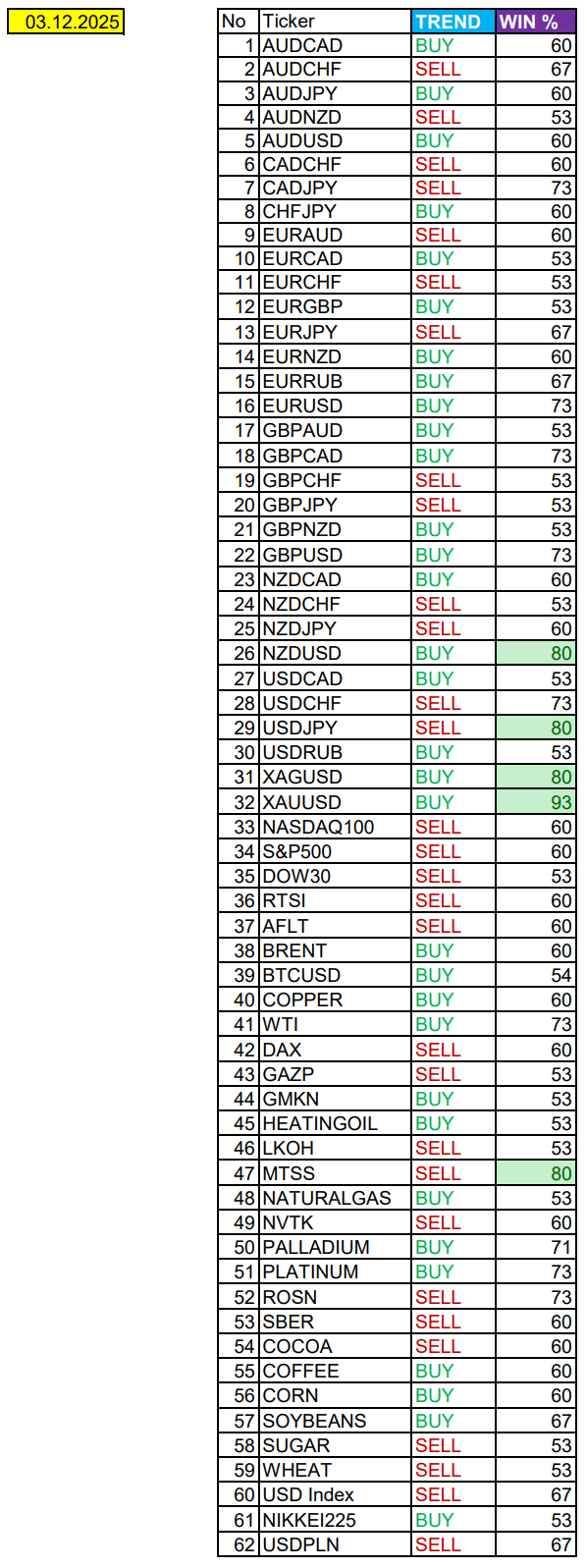 Сезонные тенденции и вероятности на среду 03.12.2025