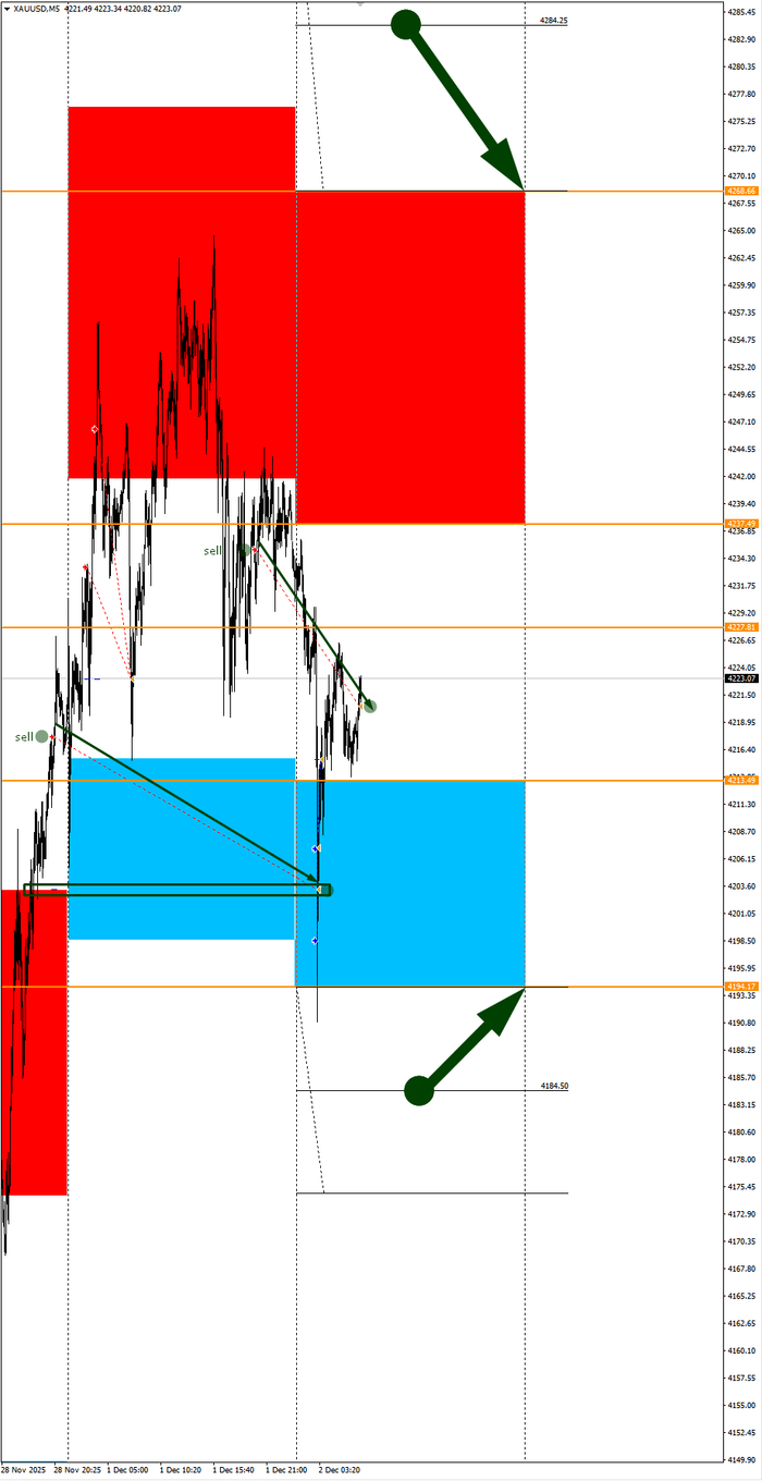 Зона продаж 4228,57-4253,82. Но новые продажи ожидаем от уровня 4266,46 и выше с целью 4253,82. В продажах сокращаем торговый объем раза в 4, т.к. баланс