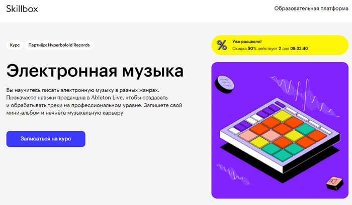Создание электронной музыки от Skillbox.ru — лучшая универсальная программа для любого уровня подготовки.