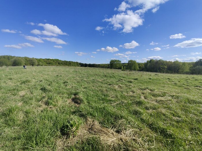 От станции «Беляево» до Битцевского лесопарка, где находится гора, чуть больше километра пешком. Зайдя в лес, идем по велопешеходной дорожке, пока не оказываемся на лугу. Никакой мистики, к слову, не ощущается - вокруг гуляют мамы с детьми, собачники, ездят велосипедисты. На поляне сворачиваем с асфальта на тропинку - она еле заметна в невысокой траве.