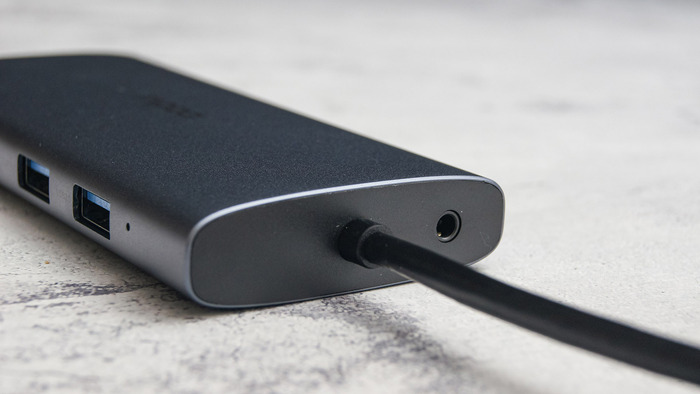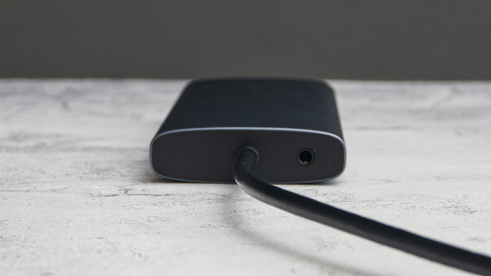 На другом торце, рядом с местом крепления основного кабеля, нашлось место для классического аудиоразъема 3,5 мм, что будет полезно владельцам ноутбуков, где комбинированный аудиовыход отсутствует или неудобно расположен.