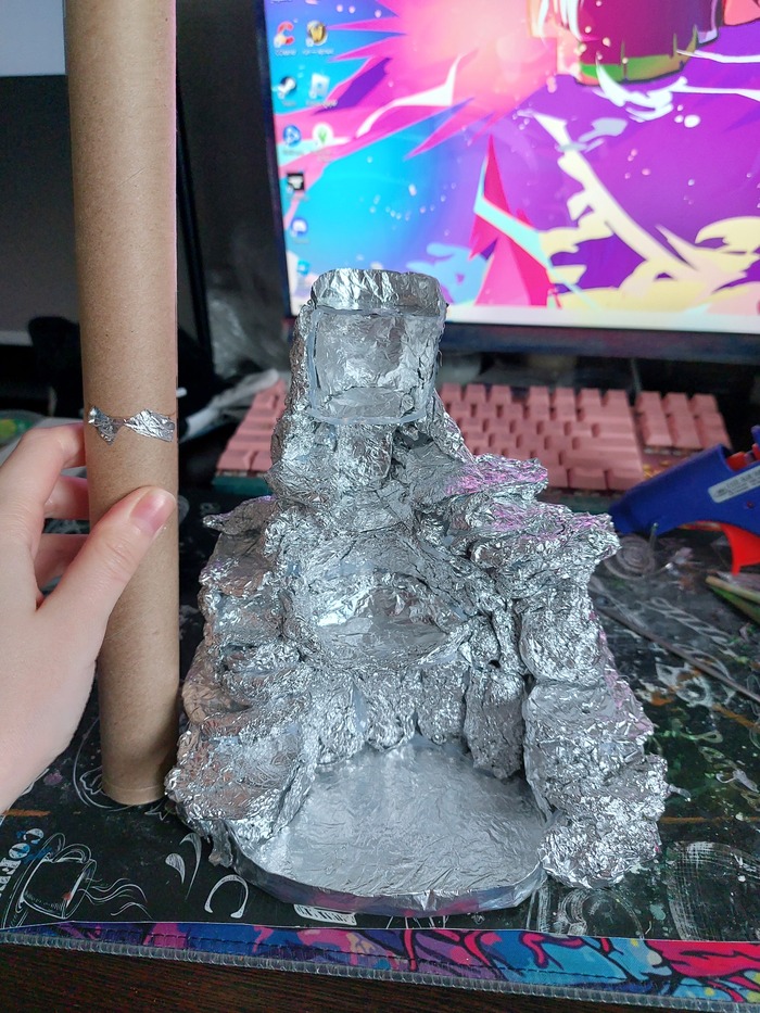 Смотрю на фото и вспоминаю, что одного рулона фольги мне не хватило, чтобы сделать каркас полностью и я отложила задумку до следующих своих выходных.